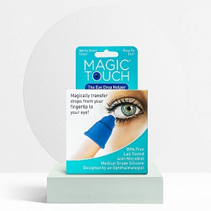 A new eye drop applicator called Magic Touch which has been engineered to easily carry eye drops into the eye without mess.